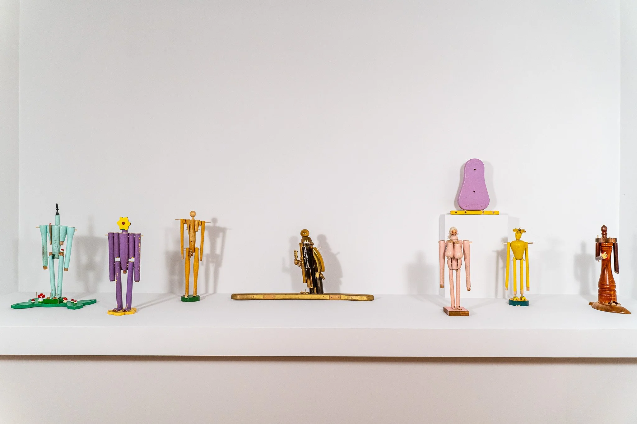 Elizabeth Englander, Bahubali (Gandhiji), 2022. Wood, paint, copper wire. 43 x 16½ x 6 3/4 in. Courtesy of the artist and Theta, New York.
